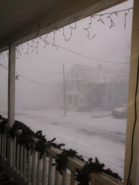 Instant white out. It was sunny 15 mins ago. And yes, I still need to take down my Christmas garland.